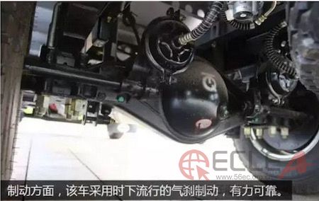 制动方面,采用的是气刹制动,驻车制动方面采用的是拉线式手刹,没有配置断气刹。这在一定条件下说明,该车不适用于过大的载重量。国五车型,需要装备尿素箱,以还原尾气中的氮氧化合物。
