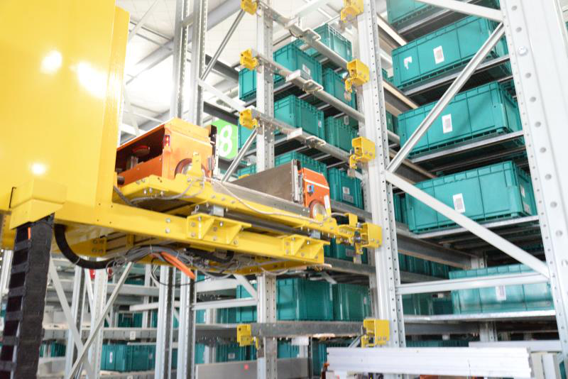 据了解,整套多穿立体库由货架系统、四向穿梭车、提升机、输送系统、电子标签拣选系统等组成。整个仓库是一个无人仓,内部货架密密麻麻,穿梭车来来往往,将货架上的货物按照订单一一取出,物料箱随着传送带送入分拣区。